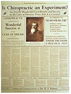 Below is an actual chiropractic newspaper ad from 1899 with a photo of DD Palmer, the discoverer of chiropractic.